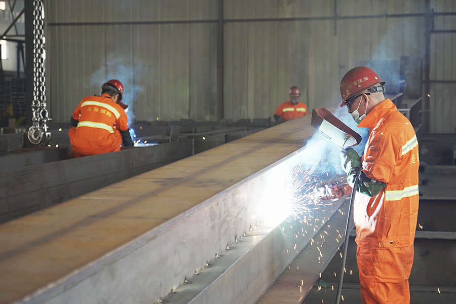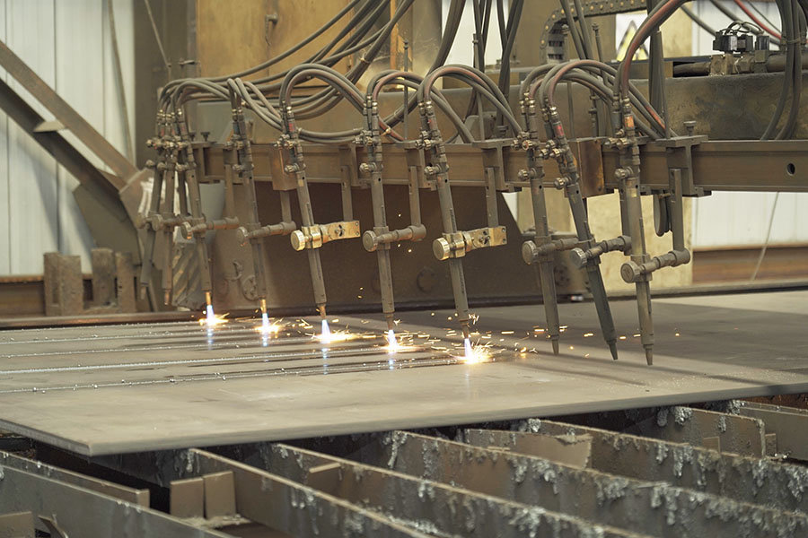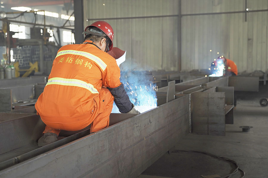 配备专业的数控自动化钢结构生产设备和流水线模式的钢结构加工设施